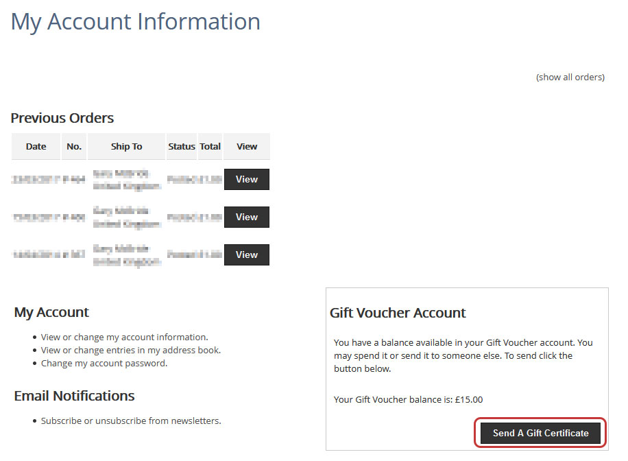 Gift Voucher Balance. If you have funds in your Gift Voucher Balance, you will